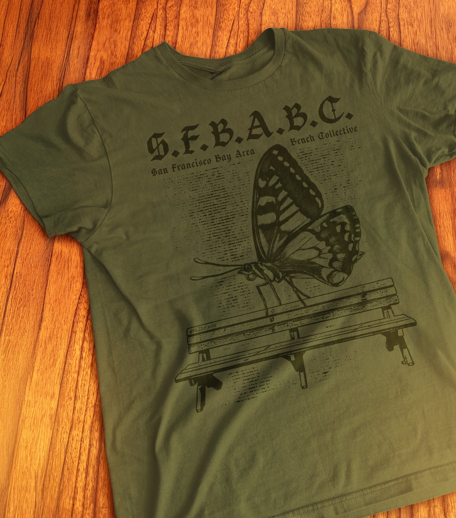 Unnatural Habitats supports SFBA Bench Collective by creating artwork for apparel and donating all proceeds from sales on this page to the organization.